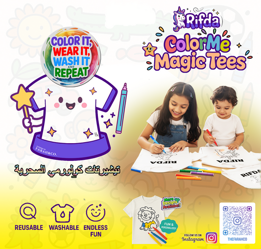 Let your kids learn and have fun with Rifda Colorme Magic Tees — washable and reusable coloring t-shirts that inspire creativity every day! 🎨