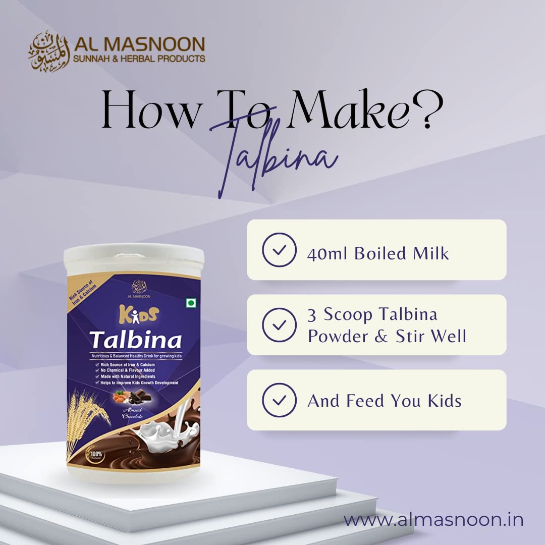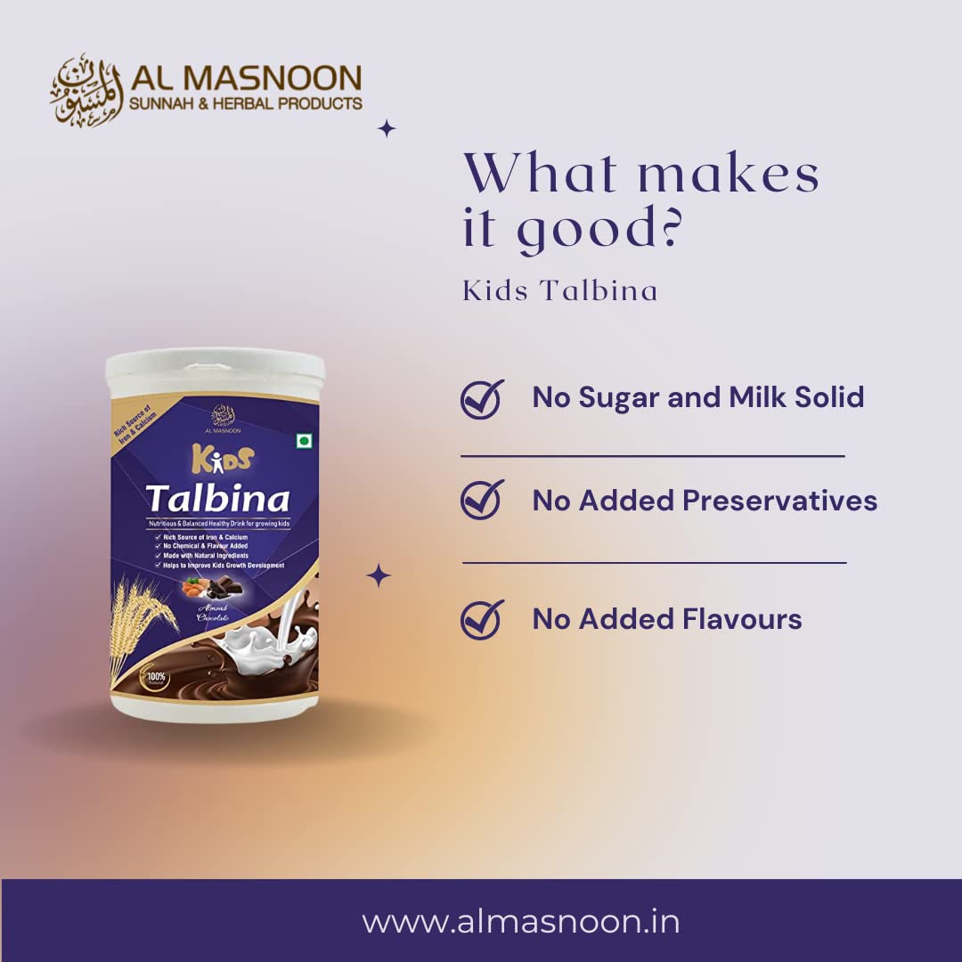 AL MASNOON Talbina for Kids | Almond & Chocolate Flavored | Healthy Sunnah Breakfast – 300g