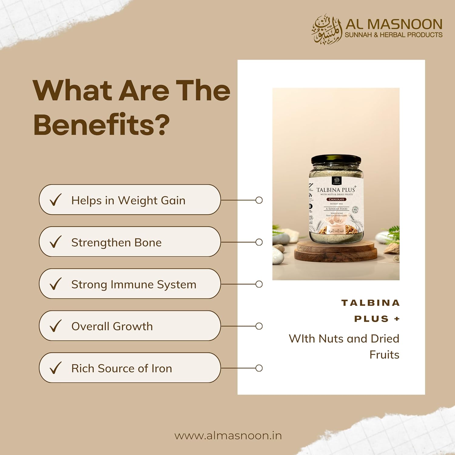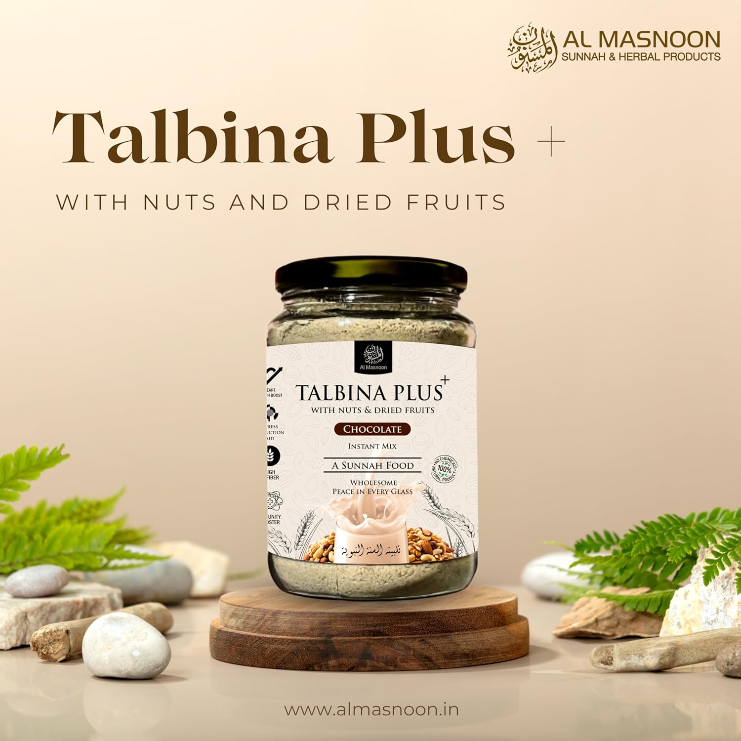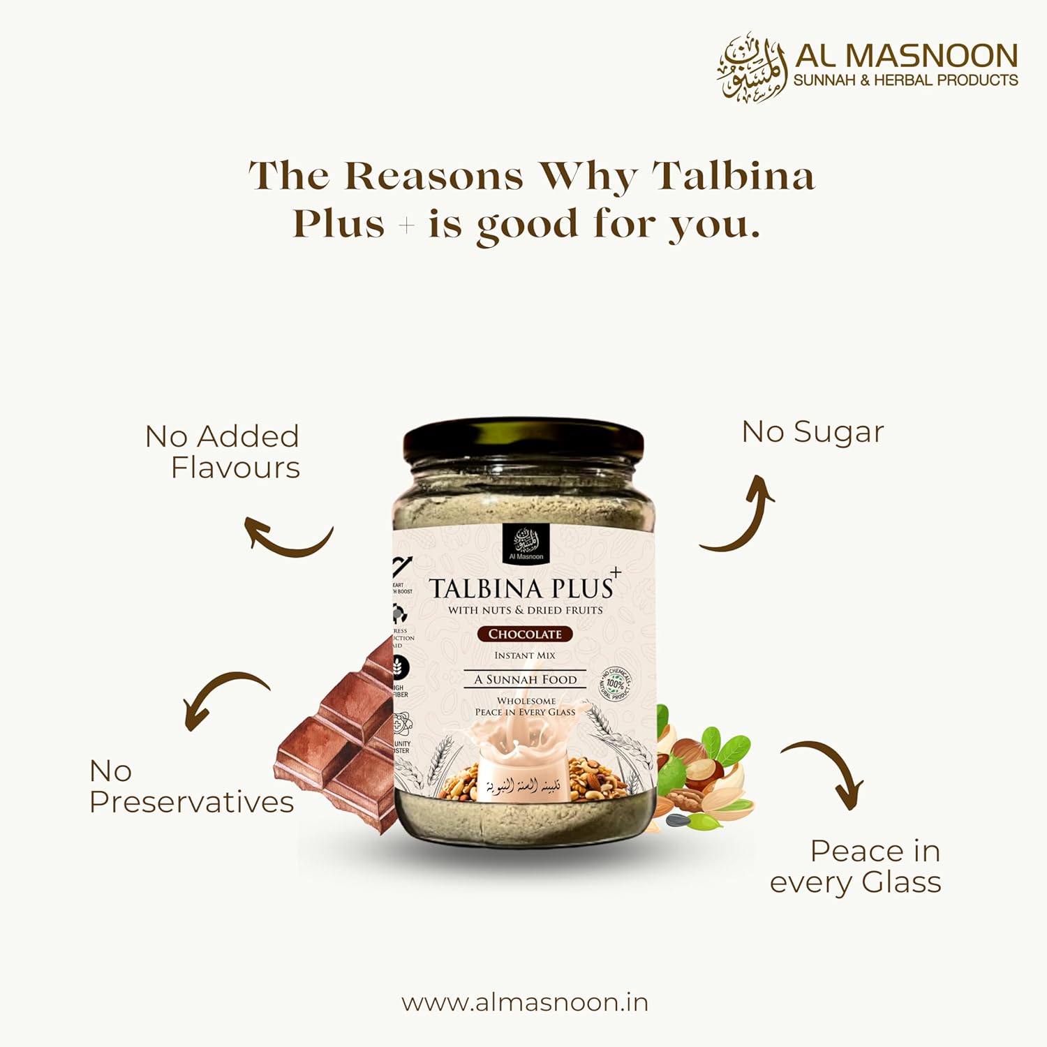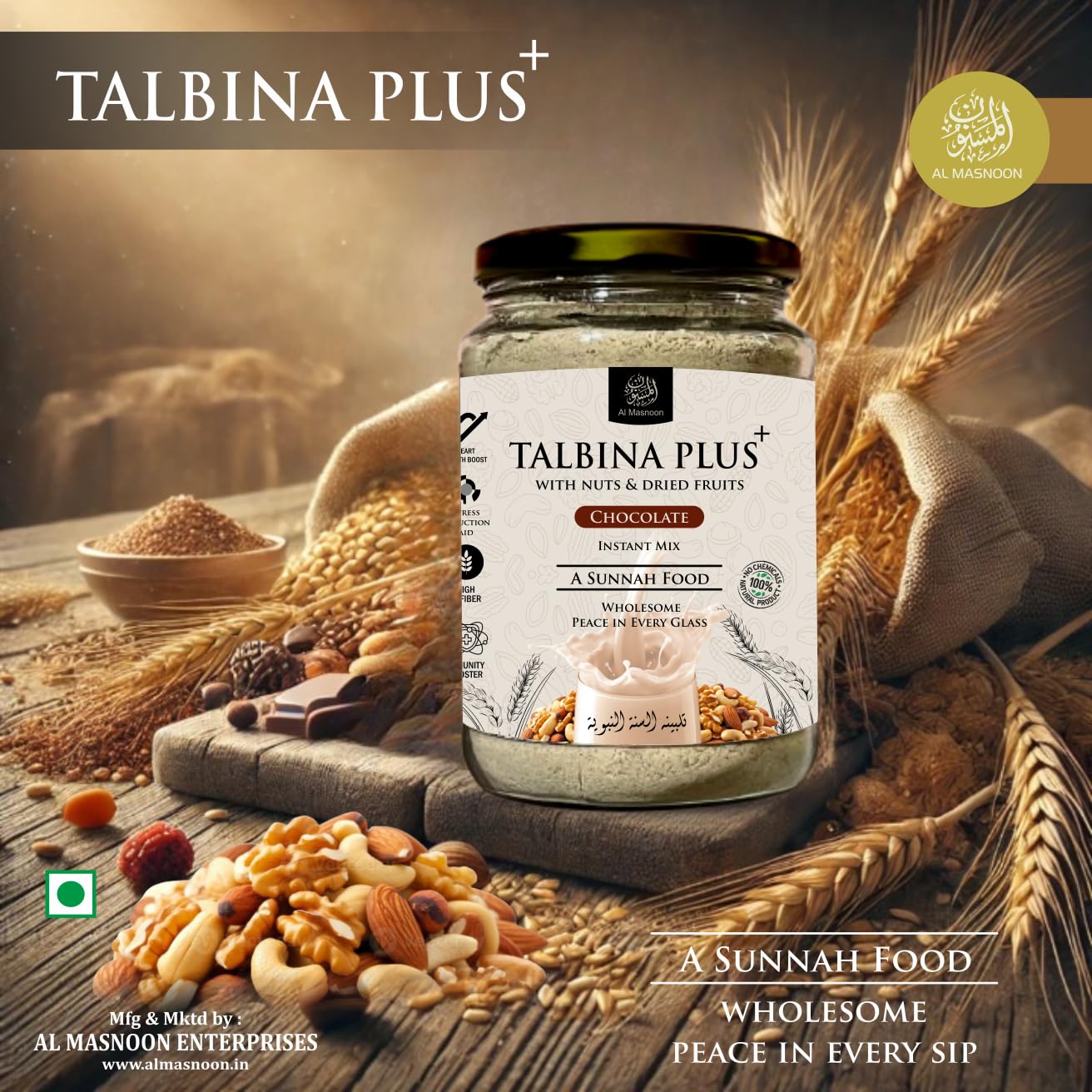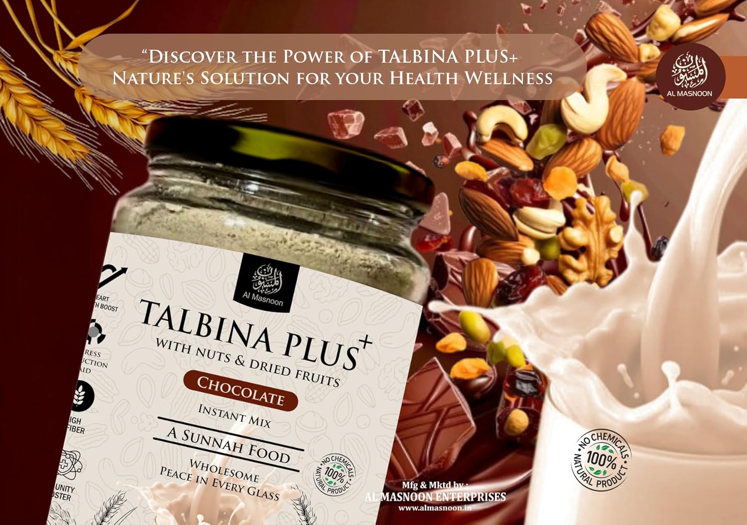 AL MASNOON Talbina+ Plus Instant Mix with Nuts & Dried Fruits (Natural Chocolate Flavour ) – 350g