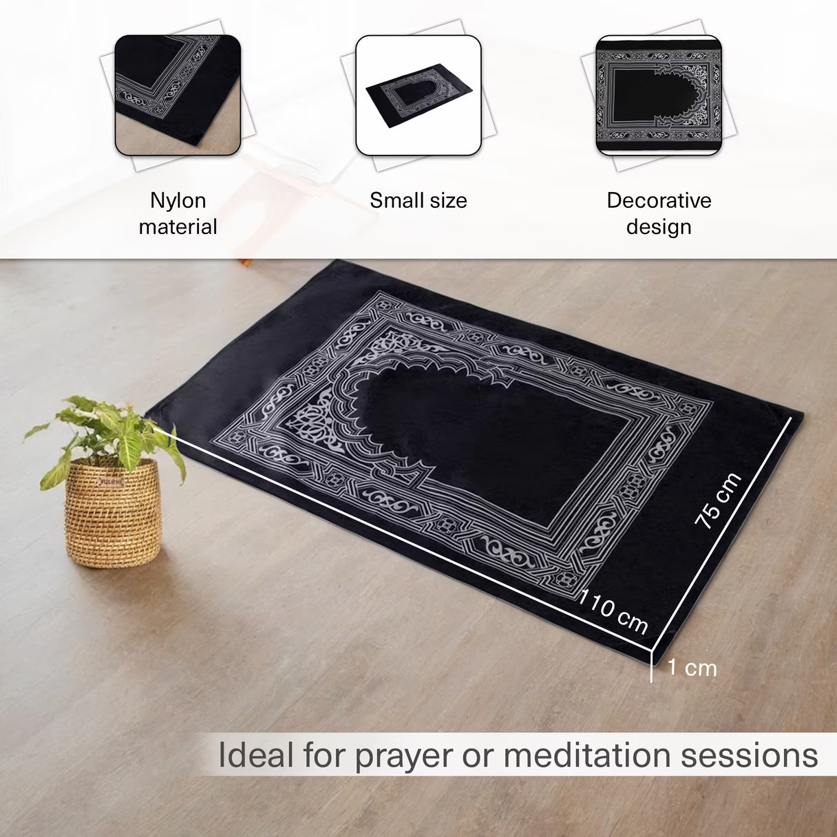 Portable Travel Prayer Mat with Qibla Compass –سجادة صلاة للجيب مع بوصلة(60×100cm) – Black & Green